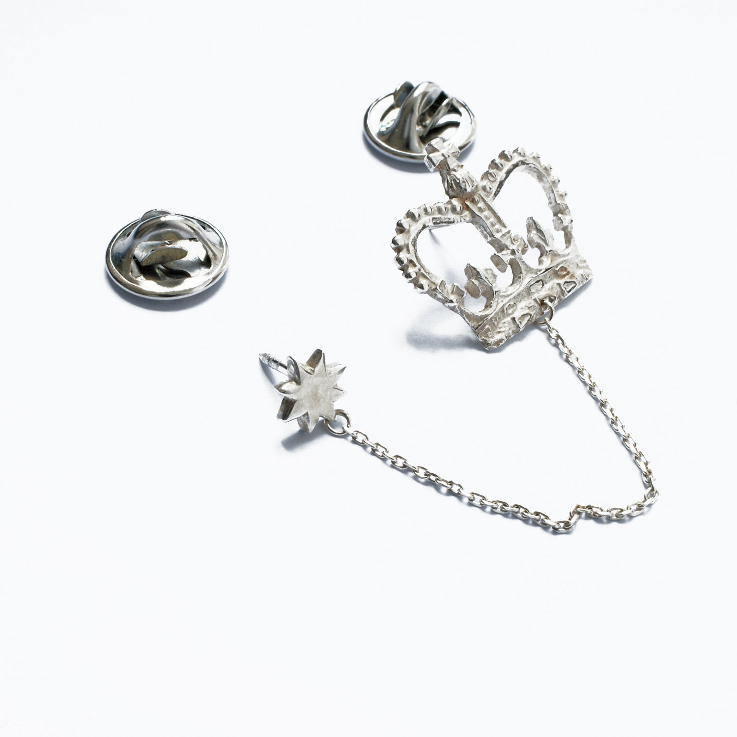 ユニセックスでお使いいただける素晴らしいアイテムです。王室派の方にもそうでない方にも、毎日の装いをワンランクアップさせてくれる、マストハブなアクセサリーの一つです。ピンは2つのメタルクラッチバックで留められます。