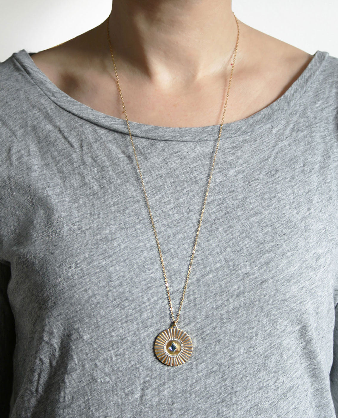 サイズ:サンバーストペンダントの直径は2.9cmです。ネックレスの長さは69.5cmから71cmまで調節可能です。
