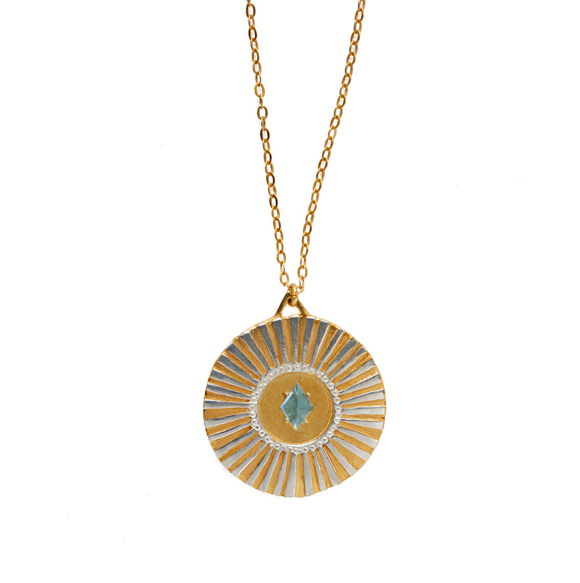 ピラミッド型の宝石をあしらった、目を引くネックレス。手作業で仕上げられたサンバーストデザインが、どんな装いにも楽しく大胆なロンドンらしさを添えます。