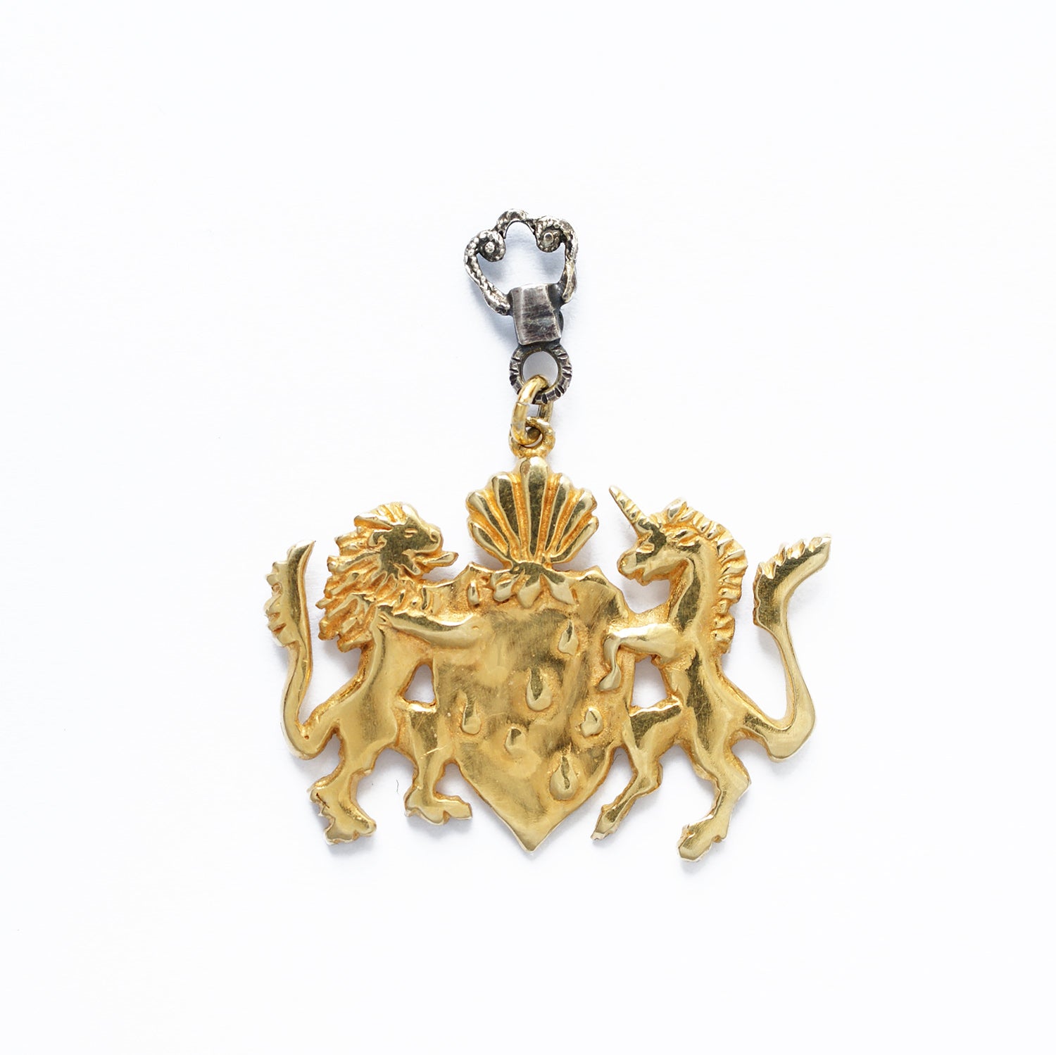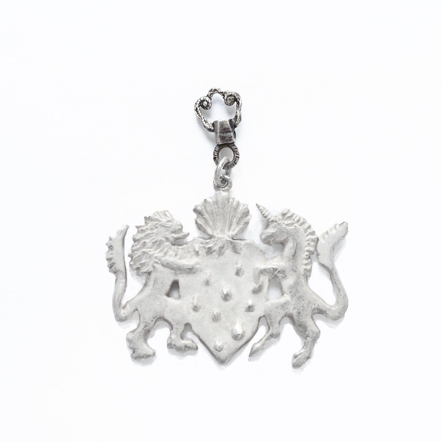 A hand carved crest featuring a majestic unicorn and a proud lion. Perfect for those who love a playful nod to classic heraldry, this unique accessory brings charm and character to any outfit. The pin closes with a metal clutch back.